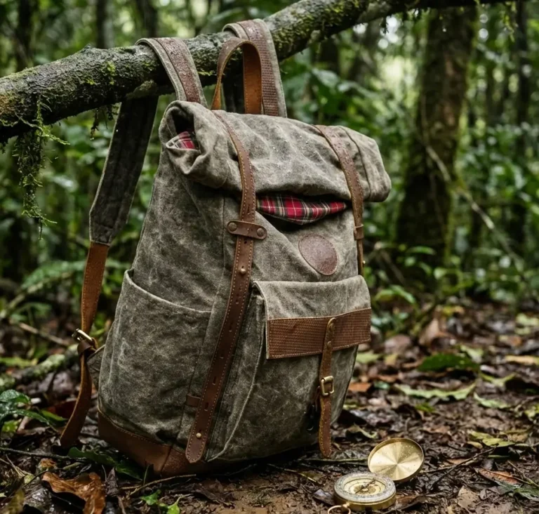 Lighter than leather, tougher than nylon. Our 18oz waxed canvas repels water, resists tears, and develops a personalized patina over time. It tells the story of where you’ve been.